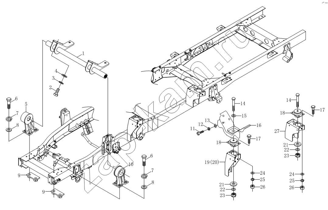 Передняя опорная поперечная балка в сборе