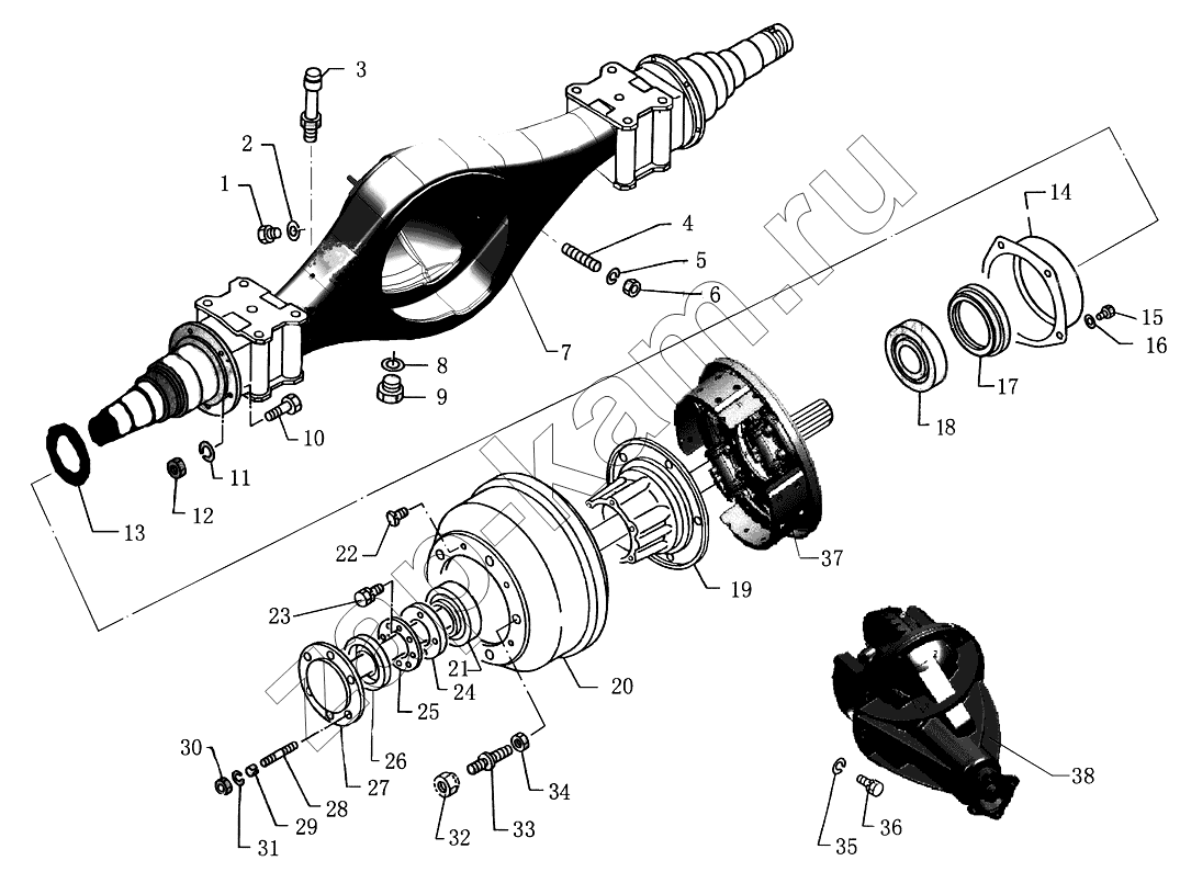 38 | ВJ1039Е3-С | Главная передача в сборе (отношение скорости 39:7) | 1 |