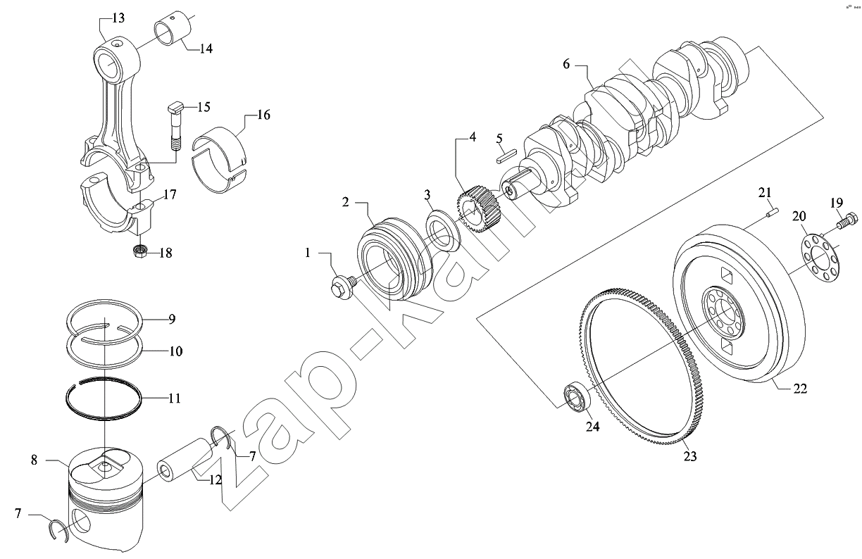 Коленвал, поршень, шатун, маховик