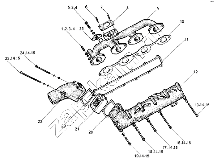 Двухголовый болт - шпилька - выхлопной патрубок