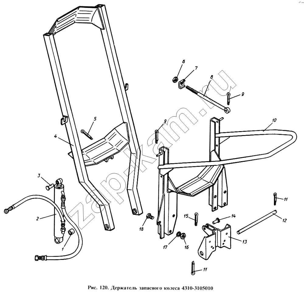 Цилиндр подъема запасного колеса с запорными клапанами в сборе