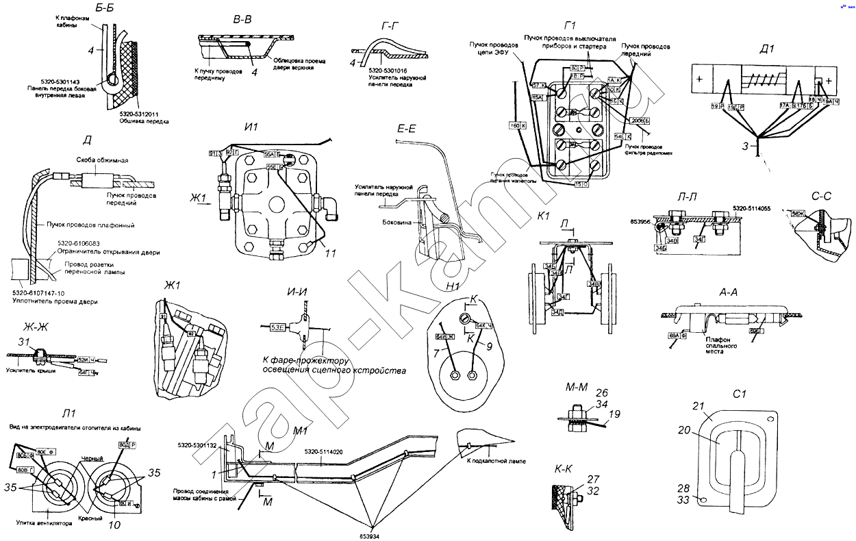 Пучок проводов выключателя приборов и стартера