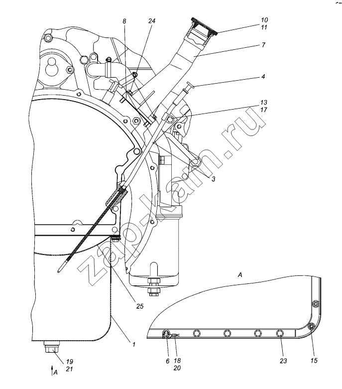 Установка масляного картера, маслоналивного патрубка и указателя уровня