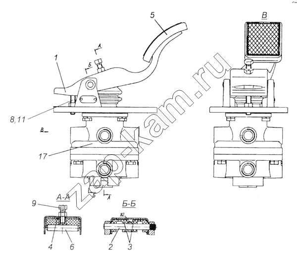 Кран тормозной двухсекционный с педалью в сборе