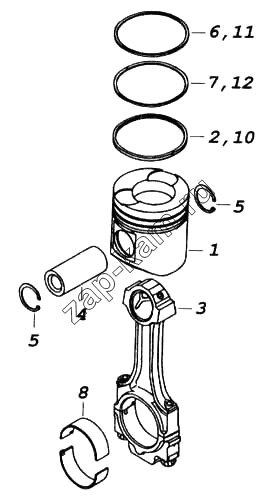 Поршень с шатуном и кольцами в сборе