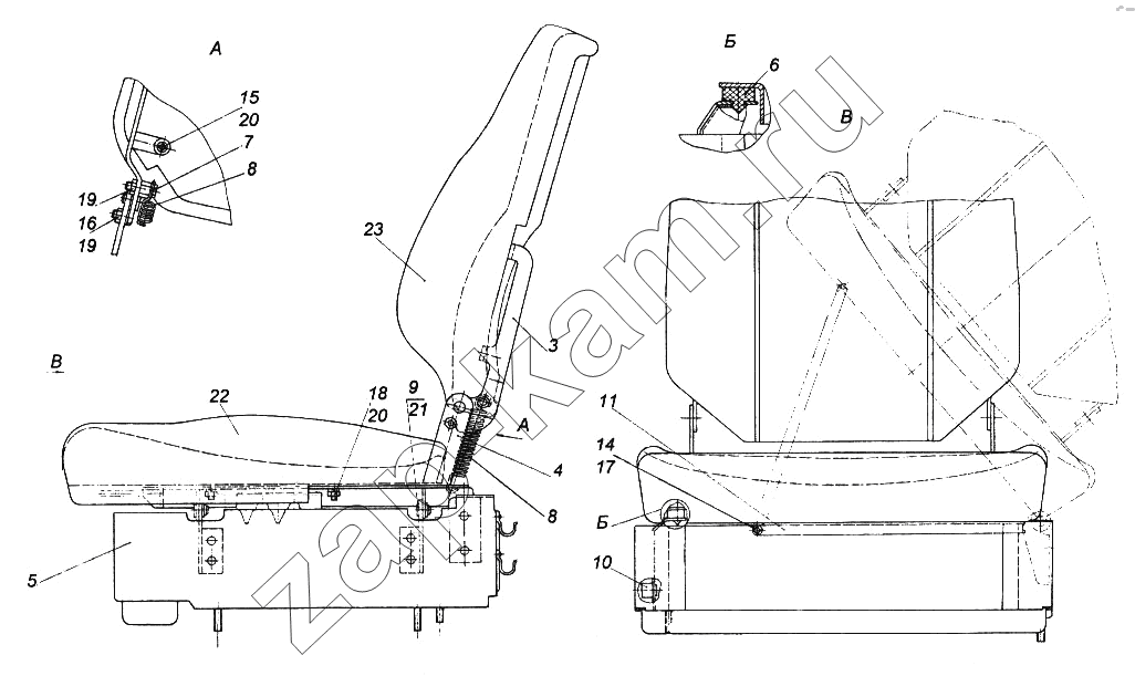 Кронштейн спинки пассажирского сиденья правый в сборе