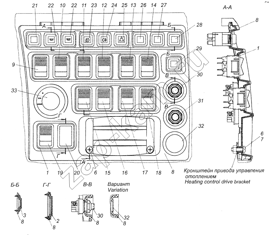 6520-4011033 Установка переключателей на панели приборной
