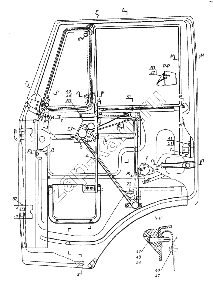 Держатель нижнего уплотнителя опускного стекла