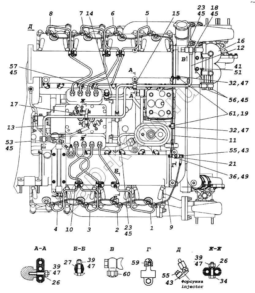 Трубка топливная дренажная форсунок правых головок