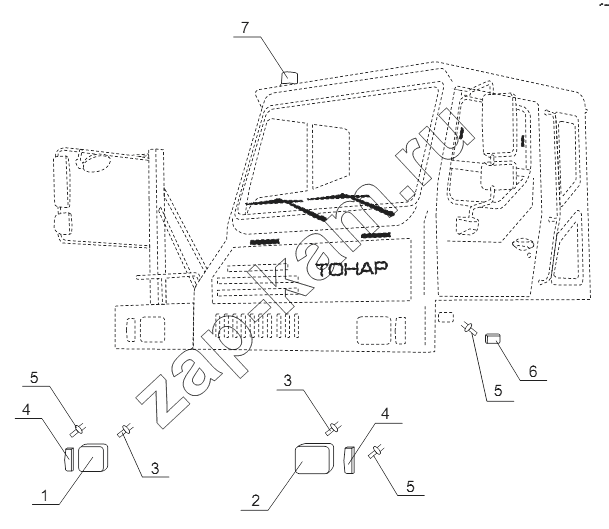 2 | 4573300044 | Правая фара кабины карьерного самосвала | 1; | |