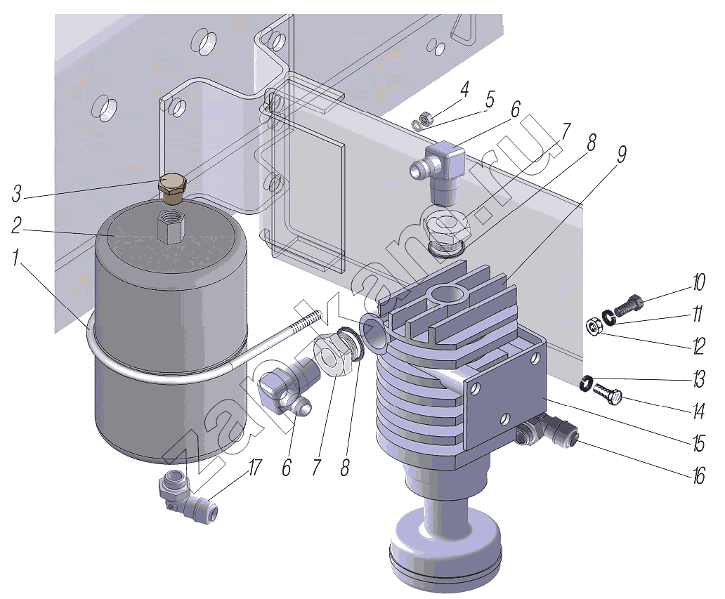 Установка пневмопривода стояночного тормоза